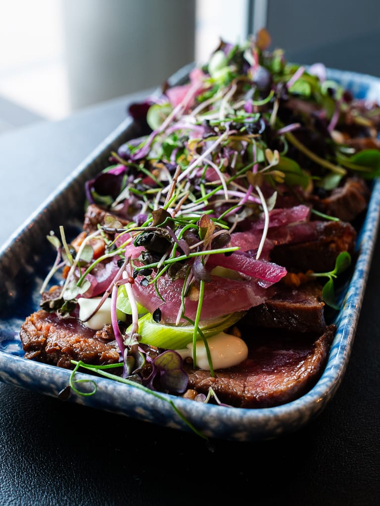 From the anniversary menu, I tried the beef tataki as a starter and loved the burst of flavours that came with each bite. A pungent mustard taste cut across the soft textures of the slightly torched slices of beef. The micro herbs and the pickled onions added some freshness. But on the beef, I also noticed something sweet. It tasted like a jam made from berries. This dish really was quite special.