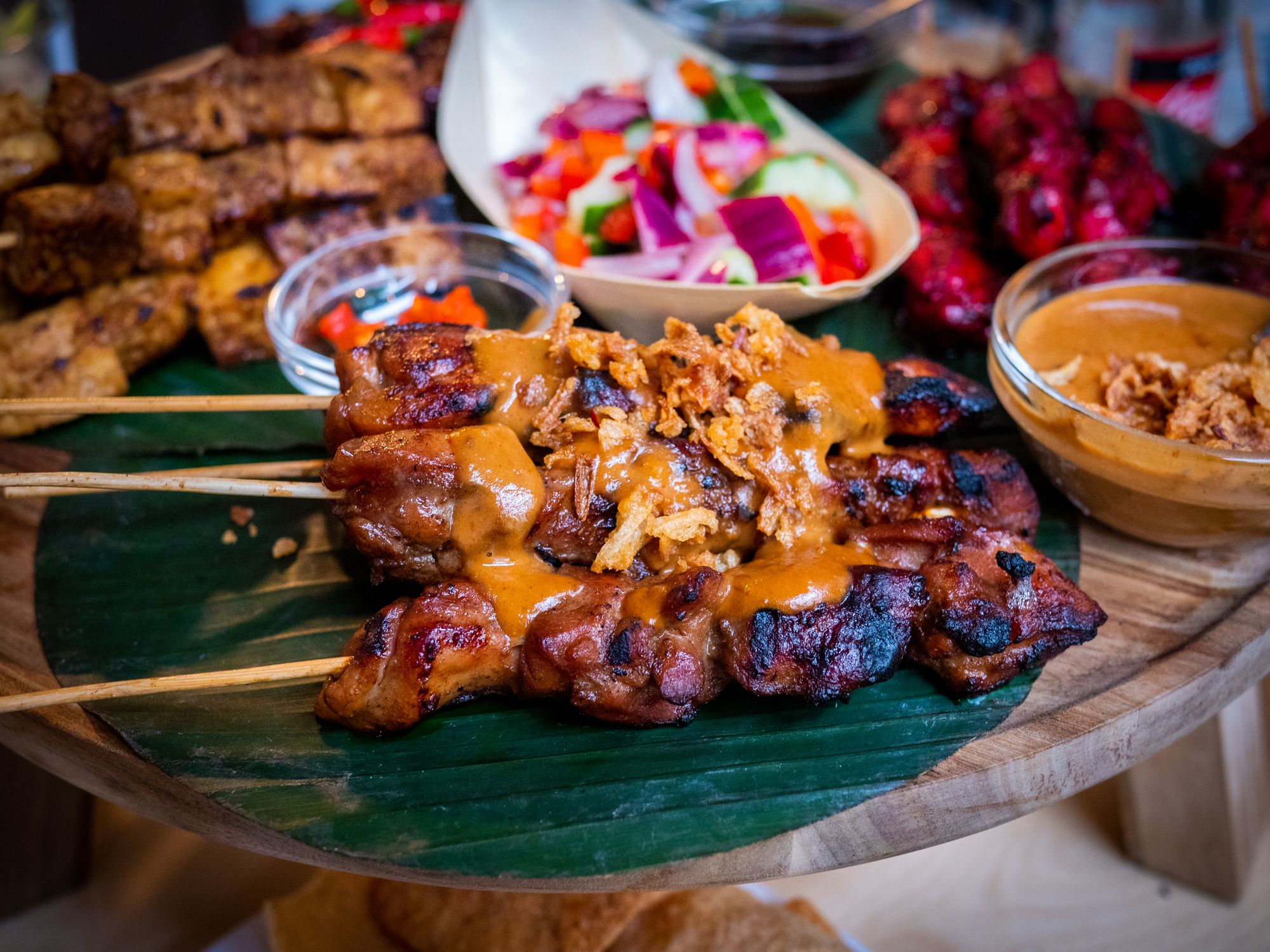Some examples are soto Betawi, vegetarian satay and rendang, lemper, pempek Lenggang, risoles, lumpia semarang and BBQ satay.