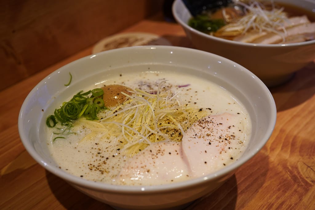 A creamy chicken broth topped with chicken chashu. Full-bodied and soothing, this is a bowl that feels comforting from the first to the last sip. Almost healing.